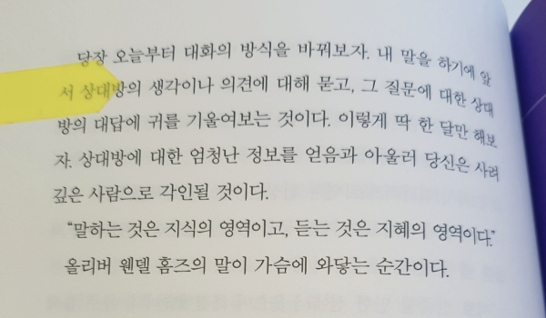 말하는 것은 지식의 영역이고, 듣는 것은 지혜의 영역이란 말이 오래 마음에 남았다.