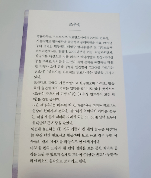 [한 개의 기쁨이 천 개의 슬픈을 이긴다]의 작가 조우성 변호사에 대해 알아봅니다.