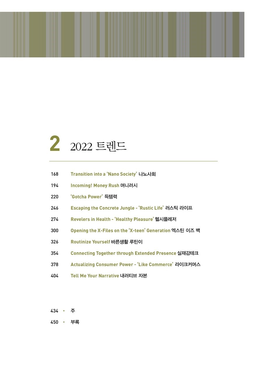트렌드 코리아 책은 영어의 앞 글자를 맞추어 타이틀을 만들어 내는데, 2022년엔