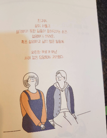이 책은 나라는 사람에 대해 계속 생각을 하게 만든다. 짧은 시간이나마 나를 아끼며 돌보며 생각게 하는 시간을 가지게 되었다.