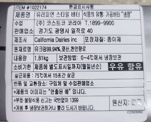 코스트코 버터 상품정보입니다.