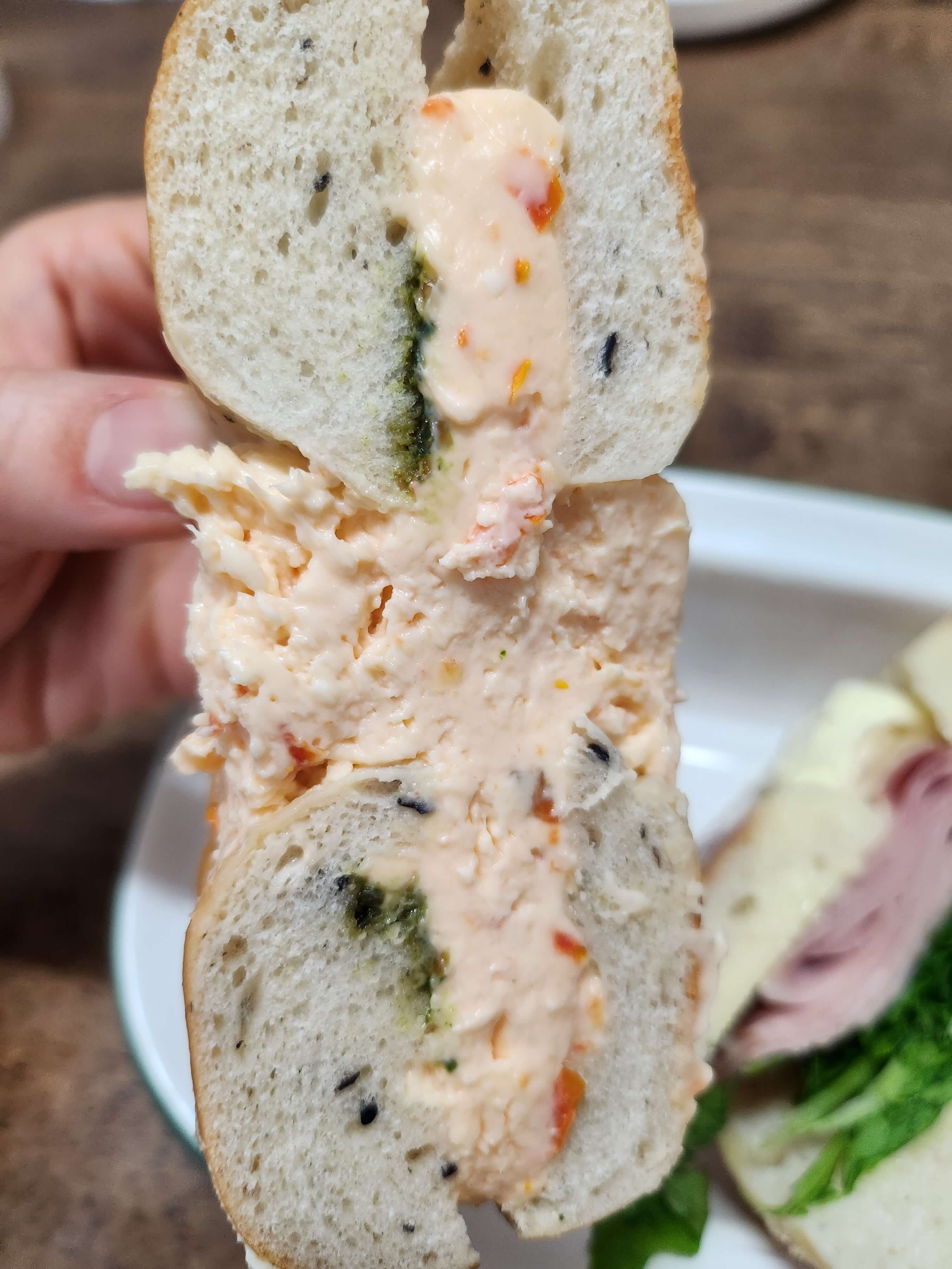 참고로 잠봉 베이글 샌드위치는 오후에도 여유있게 있는 모습이었습니다. 아무래도 잠봉 베이글보다는 바질 토마토 크림치즈 베이글이 인기가 훨씬 많은 듯합니다. 잠봉 베이글 가격이 더 비싸고 내용물도 육안으로 봤을 때 더 꽉 차 있는 느낌인데 왜 바질 토마토 크림치즈 베이글만 인기가 있는 것인가.... 이 의문은 한 입만 먹어봐도 알 수 있습니다.