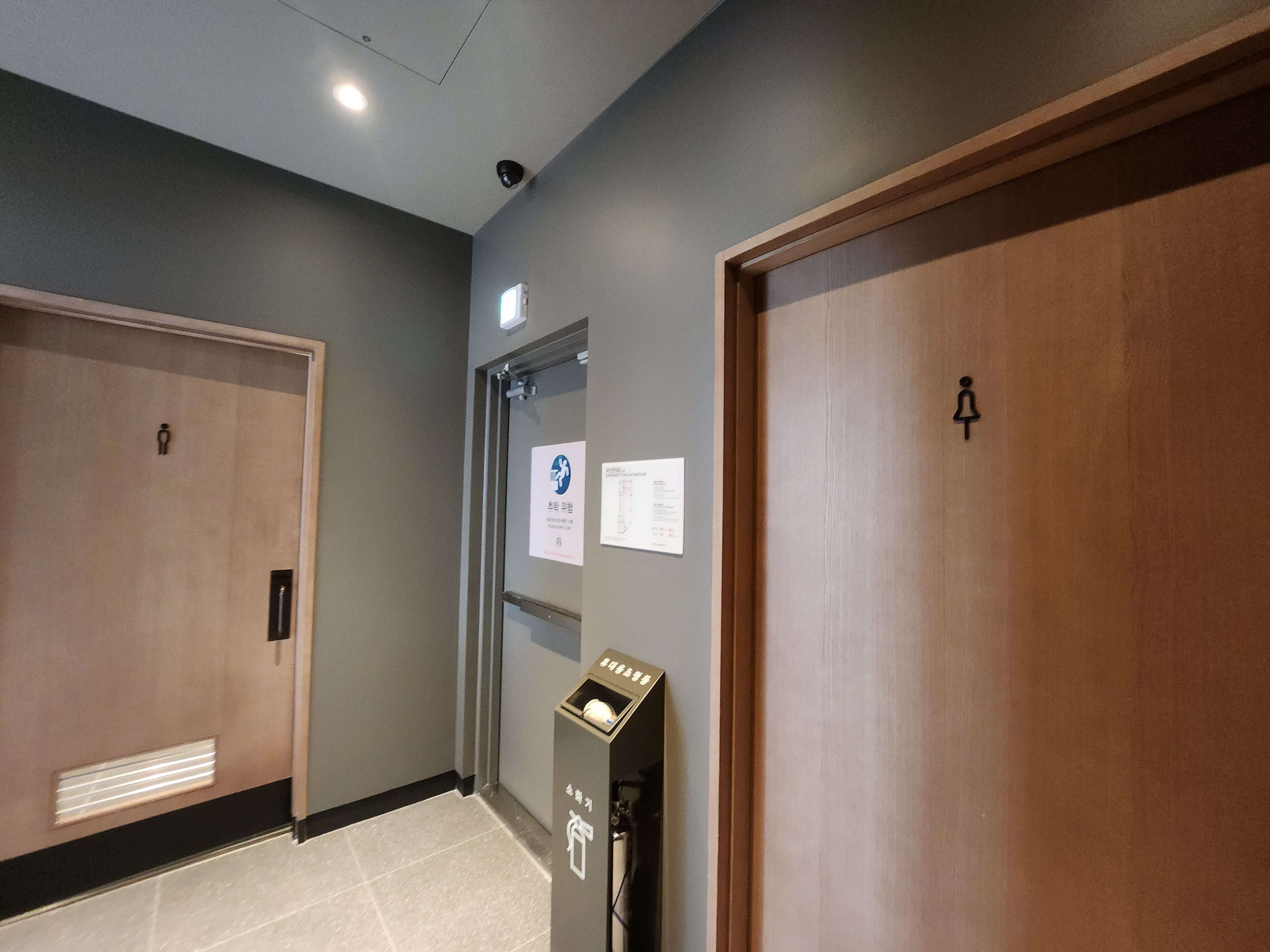 (좌: 계단에서 본 2층 모습, 우: 2층 화장실)